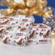 Det upprepade mönster på denna papper för julomslutning är en bild av en vacker hund i Siberian husky som bär en röd och vit julhatt, med en svart och röd buffelkudde bakom sig, och en samordnande gåva paket med ett band från guld bredvid honom. Det finns också en buffelbåge och matchande text som säger "JOY". God jul" står i den smidda texten från buffelstolpe, och din egen namnteckning finns i två fält för att du ska kunna anpassa den.