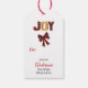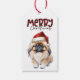 På framsidan av denna märkre av gåvor i Helgdag finns en bild av en förtjusande Pekingesisk hund som bär en röd och vit Jultomten hatt. Buffelorden som satte stil högst upp säger "God jul". Baksidan av märkrn har mer stiliserad text som säger "JOY" och en buffelbåge med fält som du kan anpassa. Se till att matchande presentemballering är papper i vår butik.