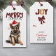 På framsidan av den här märkrn av gåvor i Helgdag finns en bild av en berömvärd tysk shepherd-marionett med röd och vit Jultomten-hatt. Buffelorden som satte stil högst upp säger "God jul". Baksidan av märkrn har mer stiliserad text som säger "JOY" och en buffelbåge med fält som du kan anpassa. Se till att matchande presentemballering är papper i vår butik.