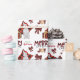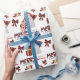 Det upprepade mönster på denna söta papper för julomslutning är en bild av en vit Hund från Bull Terrier med röd och vit julhatt, med en svart och röd buffelpuckel bakom sig, och en samordnande gåva från paket med ett band från guld bredvid honom. Det finns också en buffelbåge och matchande text som säger "JOY". God jul" står i den smidda texten från buffelstolpe, och din egen namnteckning finns i två fält för att du ska kunna anpassa den.