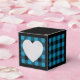 Hjärtformad presentlåda med blå och svart buffalo-ruta. Texten på baksidan av lådan kan anpassas. Om du använder knappen/verktyget 'Redigera design', kan du även lägga till egna bilder/fotografier. Andra färgvarianter finns tillgängliga.