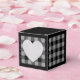 Grått och svart hjärta med buffalo-ruta presentbox. Texten på baksidan av lådan kan anpassas. Om du använder knappen/verktyget "Redigera design" kan du även lägga till egna bilder/fotografier. Andra färgvarianter finns tillgängliga.
