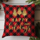 Lägg till en festlig touch i ditt hem med denna glada prydnadskudde som har en klassisk röd och svart buffalo-rutig bakgrund och orden "God Jul" i glittrande guld. Prydd med gnistrande julgranar ger denna kudde en mysig och glad atmosfär i ditt vardagsrum, sovrum eller någon annan julhörna. Perfekt för att skapa en varm och inbjudande atmosfär är denna kudde ett idealiskt tillskott till din säsongsdekoration.