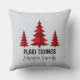 Välkommen in i julen med denna personliga julkudde som har en enkel illustration av tre städsegröna träd utförda i ett rustikt rött buffelmönster med accentuerad delikat fallande snö och texten "Plaid Tidings". Anpassa texten och lägg till ett familjenamn för att skapa en unik och meningsfull present som är perfekt för familj och vänner. Denna charmiga minnesgåva kommer att tillföra värme och julglädje till alla hem.
