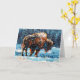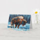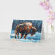 Buffel i snö, nordamerikansk bison i vinterlandskap med snöfall, kraftande andedjur, traditionell palettkniv akryl målning av Christine Karron
