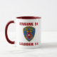 Keramisk mugg med fotoet av motor 31 och stege 14 framme av deras nya firehouse