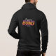 Den här T-shirt-designen för öga-hämtning har texten "Buzzing" i ett fet, fet, fet teckensnitt med en orange till solsken gult övertoning. Under den skrivs "Bond" i ett slimmat, flytande kursivt teckensnitt med en coola blå toning i en lugnande lila övertoning. Det kontrasterande färg och typsnitt skapar ett dynamiskt och energiskt utseende.
