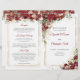 Elegantens utformning för det bröllop-vikta programmet har vattenfärg, djup röd marsala ro och rosa ros-peonier med blandad grönt färsk eukalyptus och vävd i faux guld ram. Modern teckning-skript. Tveka inte att kontakta mig för matchande artiklar eller anpassning. Ro ©