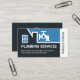 Cover features a white building frame with a leaking faucet. On the right is a white layer which houses your prestigious name. Near the base you have the business name "PLUMBING SERVICE" which you can change alongside its contact details.