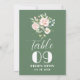Pastellrosa rosbukett vattenfärg illustration för ett bröllopsbordskort—dubbelriktad med vita och olivgröna vändbara färger.
