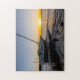 Jigszawapussel med en syn som står bredvid en kajplatta och bakom ett sjöskeppsbrott i vatten under solnedgången guld i Bukt Breeze i Florida. Det här är i Pensacolabukten. Tittar du fler utskrifter eller produkter? Besök gärna min butik: http://www.zazzle.com/timelessmomentsphtgy Det här fotot togs av Jennifer White med Timless Moments Photography. Alla bilder är upphovsrättsskyddade © Timless Moments Photography.