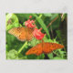 Vykortsdesignen har ett foto av 2 Bukt-vänliga fjärilar matande på turks sockel.