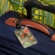 Ett vackert Bukt Fritillary butterfly sips nektar från en zinkblomma i originalfotot av konstnären Jayne Wilson.