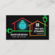 Ett svart hölje har en kreativ elektrisk ledning som aktiverar en ljusblå cyan-glödlampa. På högerna ljuger du ditt prestigefyllda namn och din befattning med namn och kontaktuppgifter nära kortets bas. På andra sidan, i ett vitt omslag, finns en logotyp för ellampor i guld som du kan använda överst, följt av ditt namn, kontaktinformation och ett slogantaggradalternativ för att publicera dina tjänster. Underbar utformning för elektriker.
