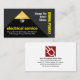 Täckningen har en guld-lampskugga. I ljuset av detta ljuger företaget namn "eltjänst" vid sidan av kontaktuppgifterna. Till högerna av detta står ett alternativ med en slogan och en bildtext med ert prestigefyllda namn som hålls vertikalt. Överliggande, i ett vitt hölje, överst är en röd logotyp som du kan använda. Detta följs av ditt prestigefyllda namn, kontaktinformation och sloganalternativ för att publicera ditt företag. En underbar professionell, kreativ kort för elföretag. #elektriker #Electricalservices #electricalentreprener #electricalEnginer #electricaltechnier #electricbulb #prob #plug #electricpower #electricalwiring #zazzlemade
