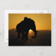 En storslagen elefant från tjuren är starkt silhuverterad mot elden i utlandet sol.