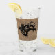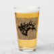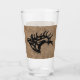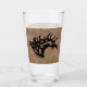 Upptäck Pub med det här unika "en av en typ"-buren, ölglas! Den har en bugling Bull Elk Black Silhouette på en brunt läderbakgrund. Originaldesign efter konstnären Kerry Miller.