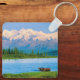 Wonder Lake, Bull moose feeds on vegetation, Alaska mountains in the distance, Denali National Park, Alaska