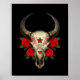 Den här unika designen har en symmetrisk skalle på en rent svart bakgrund. Grovt struktur och naturligt färg ge ser bilden realistisk ut. Skallen är dekorerad med snurrar och en femuddig stjärna i Day of the dead-döskallarnas tradition. Röd ros med löv visas precis bakom skallen som skapar en vacker kontrast. Den aggressiva skallutformningen är en fantastisk och unik utformning av Day of the dead.