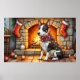 A festive Christmas scene featuring a lovable Bull Terrier sitting beside a warm, glowing fireplace adorned with stockings and wrapped in twinkling Christmas lights. This charming holiday artwork captures the Bull Terrier’s playful yet loyal nature, making it a perfect addition to any dog lover’s seasonal decor. Celebrate the warmth of the holidays and the joy of canine companionship with this cozy, heartwarming design.