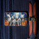 Släpp upp spookandan med den här eerie Halloween-designen med en hundar-förpackning under en mörk, månbelyst himmel, omgiven av flygande fladdermus och glödande pumpor. Perfekt för dem som kärlek en aning skrämmande roligt med sina hårigets vänner!
