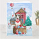 Bull Terrier Hund I snö Jul Hund Hus Kort