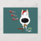 Bull Terrier försöker komma undan med att äta tomtens kakor. Bull Terrier har en jultomt, med gingerbrödman i munnen. Bildtexten lyder: "Ho.. Ho... Ho?"