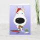 Bull Terrier försöker komma undan med att äta tomtens kakor. Bull Terrier har en julklapp, med gingerbrödman i munnen och inuti kortet lyder: "Ho... Ho... Ho??"