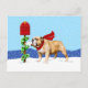 Jul med Bulldog. Fira säsongen med den här Bulldog som tog med sin helgdag till brevlådan med sin röda sticka-halsduk och rullade genom snö.