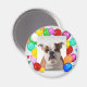 Bulldog-Hund med färgstarka bubblor Födelsedagstem Magnet