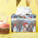 En hjärtlig högtidlig illustration med en glad hund som leker i snön, bär en tomtehatt och omges av färgglada presentaskar. I bakgrunden bygger barn en snöman bredvid en snötäckt julgran, vilket skapar en glädjefull vintervårld. Perfekt för att sprida julstämning och fånga julens magi.
