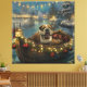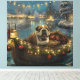 Sätt fart i julhelgens magi med denna vackert detaljerade illustration och visa en stolt hund sitta i en festivt dekorerad båt, som glider över en verklig jul sjö. Väntarna ljus från det närliggande gräs träd avspeglar sig utanför vatten och kastar en varm, feg glöd som förstärker den mysiga ambitionen. Ornament är farliga från båtens sidor, medan de lyser vägen och skapar en scen som fångar det verkliga kärnan i julens värme och glädje. Denna nostalgiska konst ger en aning helgdag magi åt vilket håll som helst, perfekt för dem som vårdar säsongens anda.