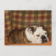 bulldog ljugande på soffa vykort
