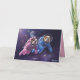 A dog Valentine's Day card featuring a Bulldog couple in a flying saucer going to the moon.