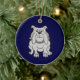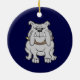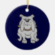 Bulldoggmaskot på blått julgransprydnad keramik