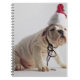 Bulldoggvalp som ha på sig den Santa hatten Anteckningsbok Med Spiral