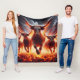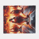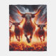 En kraftfull illustration av tjurar på långa tjurar som laddar på en dramatisk och eländig scen. Bilden symboliserar styrka, energi och beslutsamhet, förbättrad med levande färg och intensiv atmosfär av lava och lågor.