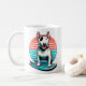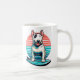 En söt tjur-skräckare på en surfa-tavla som leende med ett lycklig-utseende. En blixt tillbaka till 80-talet när Spuds Mackenzie var populärt. Eller en mugg för att visa kärlek på din tjur hund. Varje dag dricker man mugg.