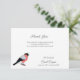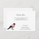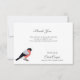Ett elegant begravningskort med Tackkort-kort med en bullfinkfågel på den lämnat. Ett mycket nyktert och enkelt sätt att tacka dem som stödde er under en sorgeperiod!