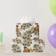Handritad illustration av en bullfinkfågel på bukett av dahlia, krysanthemum, bär och gren i höst löv.