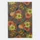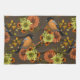 Handritad illustration av en bullfinkfågel på bukett av dahlia, krysanthemum, bär och gren i höst löv.