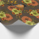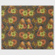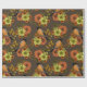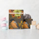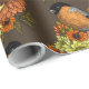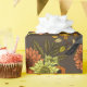 Handritad illustration av en bullfinkfågel på bukett av dahlia, krysanthemum, bär och gren i höst löv.