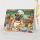 Fånga helgdag glädje att baka med den här härliga scenen med en glad kock omgiven av julgransar och festliga dekorationer. En hjärteberande firande av årstidens sötaste traditioner.