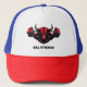 "Den här kraftfulla och dynamiska designen har en muskelröd tjur med ett intensivt uttryck som lyfter en tung klockring. Tjuvens starka horn och kraftfulla bygg understryker den råa styrkan och beslutsamheten. Den här utformningen är mångsidig för en rad produkter som har att göra med kondition, sport och högenergimärken. Föreställ dig det på gym kläder, träningstillbehör, sportlagsartiklar eller energidrycksbrännning, transportkraft och intensitet."