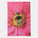 Den här kökshandduken i fantastisk har ett strålande, intilliggande foto av ett humlebin sitta på en rosa zinkblomma. Det är så detaljerat att man kan se dess hårig och lyssna på vingar. Detta är en firande av en mycket älskad och mycket hårt arbetande liten varelse.