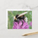 Det här vackra vykortet har ett strålande, intilliggande foto av ett humlor sitta på en rosa tistle blomma. Det är så detaljerat att man kan se att håriget täcks av pollen. Detta är en firande av en mycket älskad och mycket hårt arbetande liten varelse.