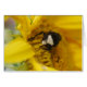 Originalfotografi av en humlor på en solros. Stora svarta och vita bin vilar på den ljusa blomman.