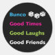 Här är en färgstark grafisk design som visar tärning och ord: Bunco, Bra Times, Bra Laughs och Bra Friends. Lägg till din egen grupp namn, datum eller annan anpassning. Underbara värdinna-gåva eller pris till nästa bunco party.