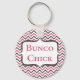 Här är en rosa- och grått-grafik Bunco-design som har en chevron-bakgrund i mönster. Text: Läs Bunco Chick. Underbar gåva till en födelsedag, värdinna, helgdag eller ett pris.