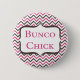 Här är en rosa- och grått-grafik Bunco-design med en chevron-bakgrund i mönster. Text läs Bunco Chick. Underbarare gåva till en födelsedag, värdinna, helgdag eller ett pris.